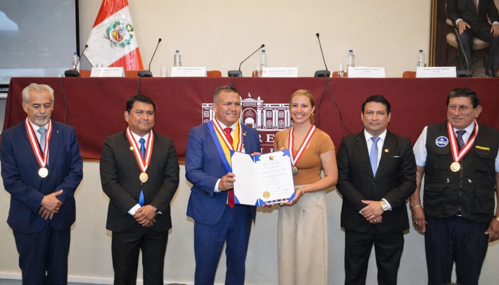 ANDREA MEDINA STEIN fue distinguida por el Parlamentario Andino, Fernando Arce, en el Salón Alberto Andrade Carmona del Congreso de la Republica, con el reconocimiento honorífico como “Ciudadana de Valor y Agente de Cambio”, en presencia del Director Ejecutivo de la Cámara de Comercio Nacional del Perú, Abog. Edgar Roncal; el Presidente de la Corporación Nacional de Comerciantes – CONACO, Abog. Guillermo Berdejo; el Director General de Nacional Tv Perú, Ceo. Carlos Torres Martínez; y el Presidente de la Organización Latinoamericana de Turismo, Lic Juan Manuel Pereira; entregándole un merecido reconocimiento por su destacada labor profesional, su compromiso con el desarrollo social y su liderazgo transformador en beneficio de la comunidad.
