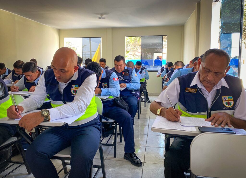 El alcalde Carlos Bruce promueve la capacitación de los serenos de Surco en el uso de armas no letales mediante evaluaciones psicológicas realizadas por especialistas de la Policía Nacional.