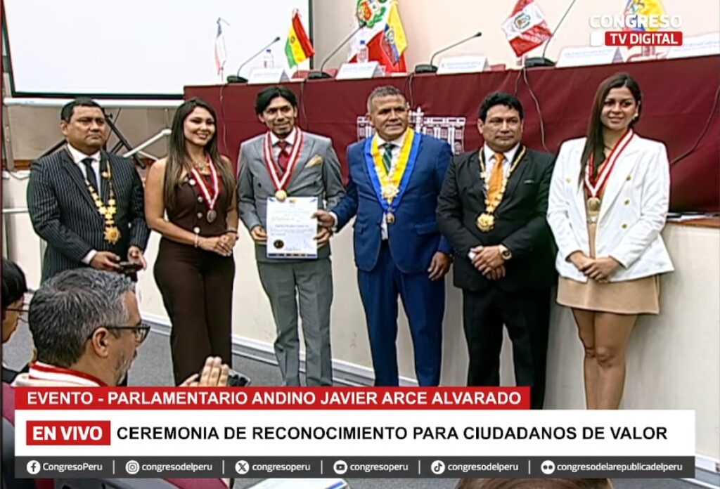 Engelbert Brandon Cornejo Ato, fue distinguido por el Parlamentario Andino, Fernando Arce, en el Salón Alberto Andrade Carmona del Congreso de la Republica, con el reconocimiento honorífico en la categoria de “Ciudadano de Valor y Agente de Cambio”, en presencia del Director General de Nacional Tv Perú, Ceo. Carlos Torres Martínez; del Director Ejecutivo de la Cámara de Comercio Nacional del Perú, Abog. Edgar Roncal; de la Directora Ejecutiva de la Fundación Star Azul Internacional, Ceo. Siret Echaiz Delgadillo; y de la Directora Ejecutiva del Diario El Presidente, Eco. Giomaeli Oporto Leiva; entregándole un merecido reconocimiento por su destacada labor profesional, su compromiso con el desarrollo social y su liderazgo transformador en beneficio de la comunidad.