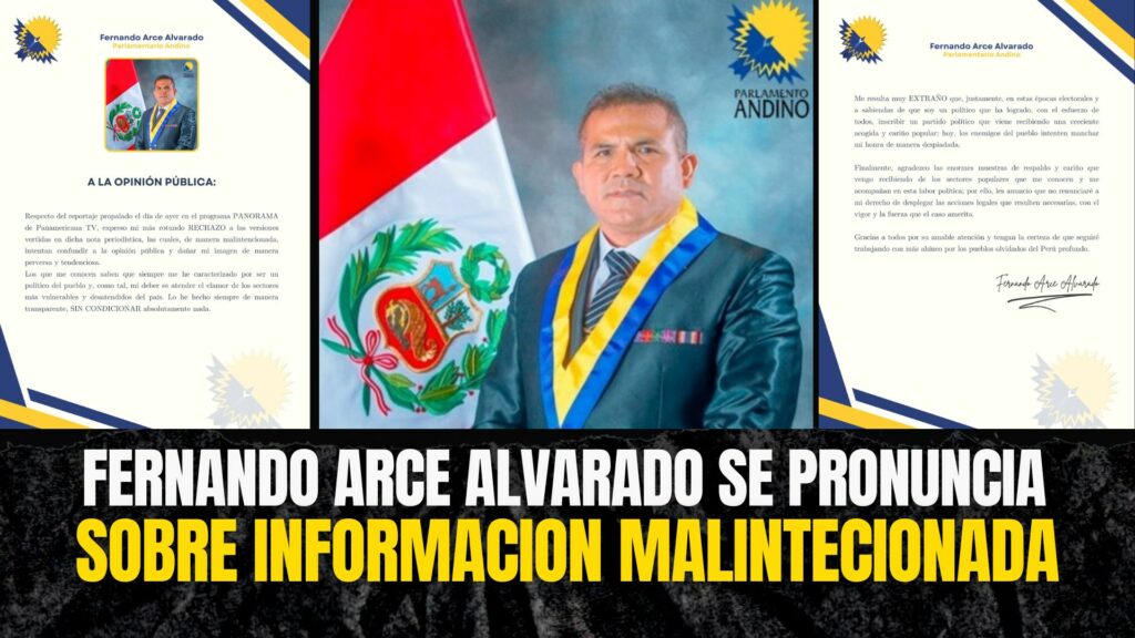 Fernando Arce Alvarado, Parlamentario Andino, a través de sus redes sociales manifestó lo siguiente: