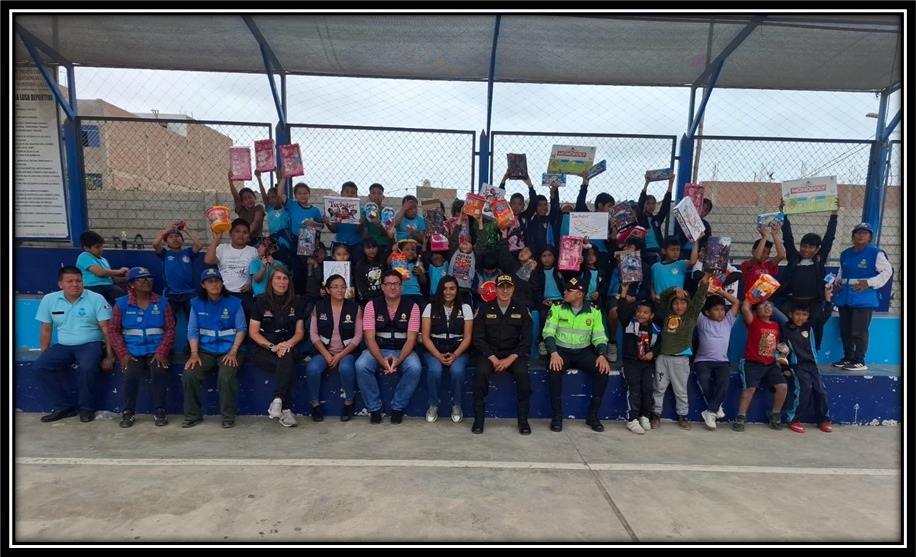 En ese marco, se realizó una emotiva campaña de sensibilización dirigida a escolares del nivel primario de la Institución Educativa N.° 5155 Bicentenario de Oquendo, bajo el lema “En esta Navidad no me regales un arma de juguete, regálame un juguete educativo”. La actividad permitió concientizar a los niños sobre los riesgos del uso de juguetes violentos, promoviendo en su lugar el aprendizaje, la sana convivencia y el desarrollo integral, mediante el intercambio de juguetes bélicos por material didáctico y educativo.