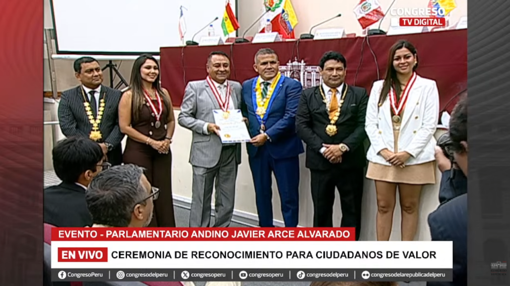 JESÚS GILES ALIPÁZAGA es reconocido como “Ciudadano de Valor y Agente de Cambio” por el Parlamento Andino.