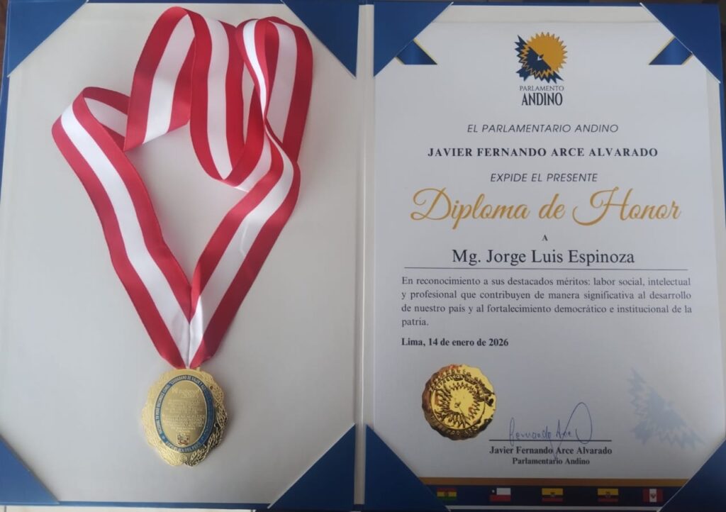 JORGE LUIS ESPINOZA, es reconocido como “Ciudadano de Valor y Agente de Cambio” por el Parlamento Andino.