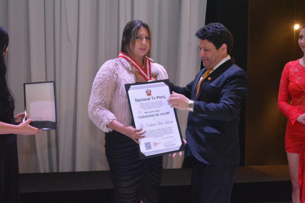 Katherine Uribe Salvador fue reconocida por Nacional TV Perú con la distinción honorífica de “Ciudadana de Valor y Agente de Cambio”, en mérito a su destacada labor profesional y su firme compromiso con el desarrollo social y comunitario. Este reconocimiento resalta su liderazgo, dedicación y capacidad para generar un impacto positivo en su entorno, convirtiéndose en un ejemplo inspirador para las nuevas generaciones.