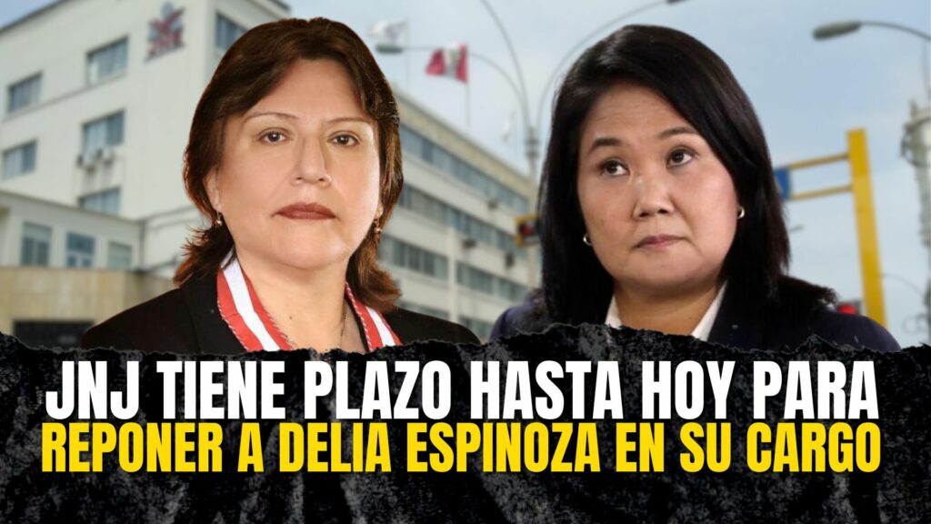 La Junta Nacional de Justicia tiene hasta las 11:59 p. m. de hoy, lunes 24 de noviembre, para restituir a Delia Espinoza en el cargo de fiscal de la Nación. El plazo obedece a la orden emitida por el Noveno Juzgado Constitucional, que concedió a Espinoza una medida cautelar que deja en suspenso todos los procesos disciplinarios en su contra.