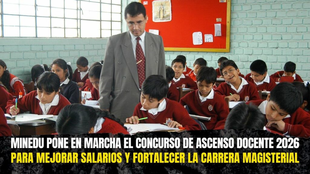El Ministerio de Educación (MINEDU) inició oficialmente, el 16 de abril de 2026, el proceso de inscripción al Concurso de Ascenso Docente 2026, dirigido a profesores de la Educación Básica que buscan acceder a escalas superiores dentro de la Carrera Pública Magisterial. El concurso forma parte de las estrategias para revalorar el rol docente en el sistema educativo peruano.