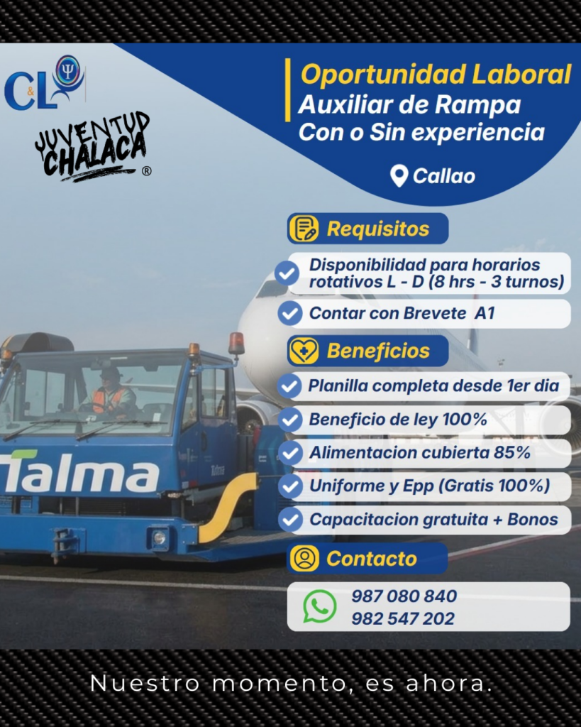 En CyL Talento Humano con el apoyo de Juventud Chalaca estamos en la búsqueda de trabajadores. ¡Postula CON O SIN EXPERIENCIA!