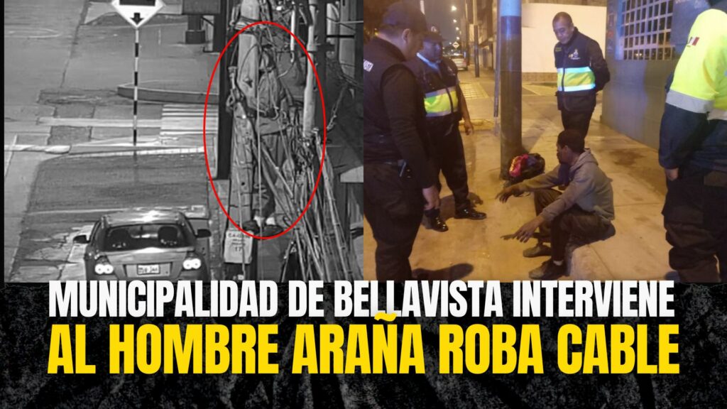 Gracias al oportuno monitoreo del sistema de videovigilancia, personal de serenazgo de la Municipalidad de Bellavista logró la intervención y arresto ciudadano de un sujeto que fue sorprendido robando cables de un poste de telefonía en la cuadra 28 de la avenida Óscar R. Benavides.