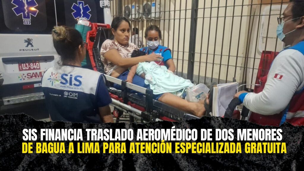 El Seguro Integral de Salud (SIS) financió el traslado aeromédico de dos menores de edad desde la provincia de Bagua, región Amazonas, hacia la ciudad de Lima, donde recibirán atención médica especializada de alta complejidad, sin costo alguno para sus familias.